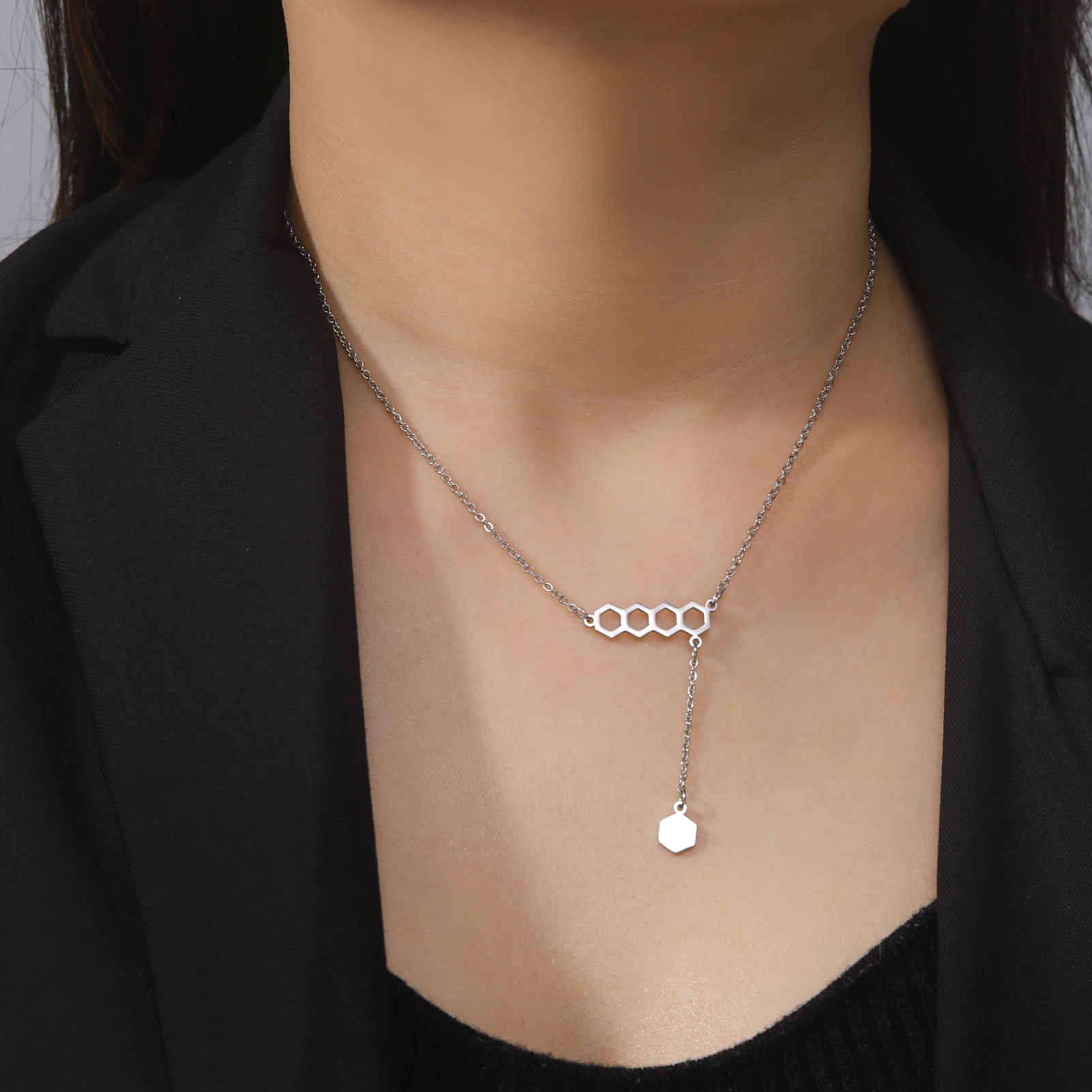 Отзывы о Unift Женская Длинная цепочка из нержавеющей стали Геометрический шестиугольник