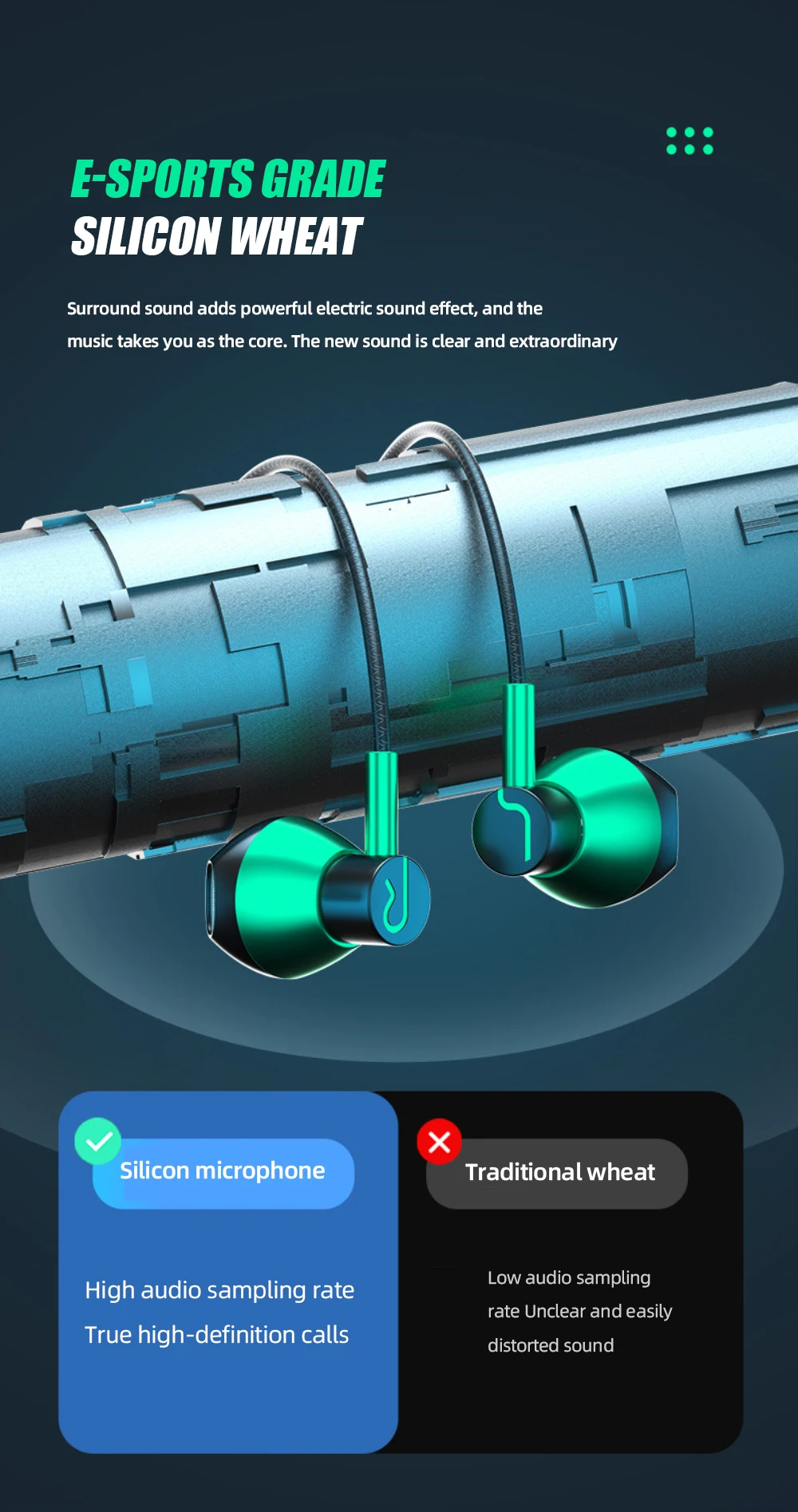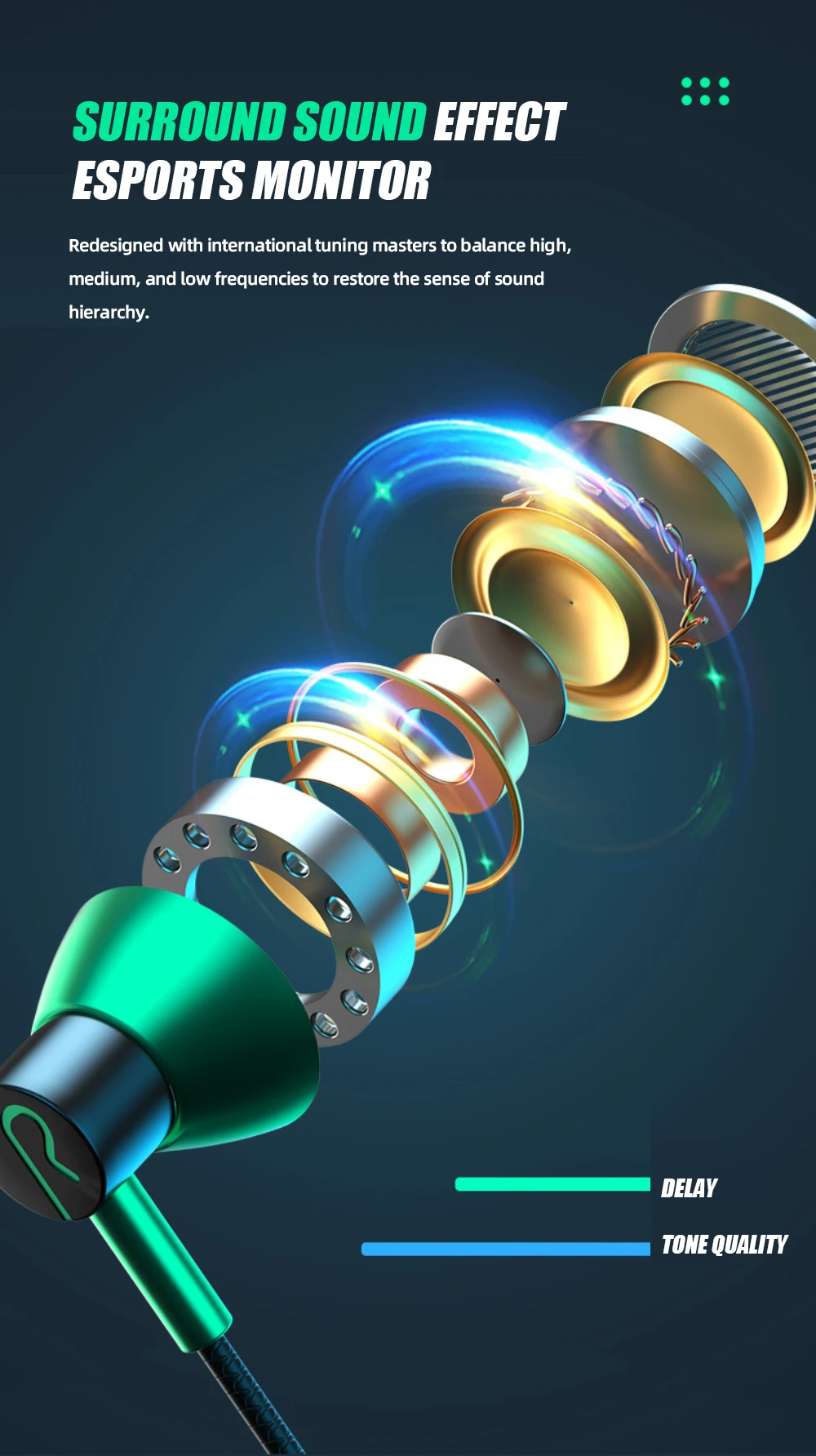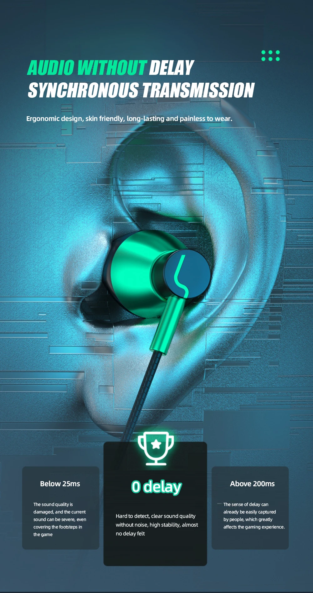 1. Двойной выбор звука профессионального оборудования, оснащенного интерфейсами 3,5 мм и Type-C мм, чтобы в электронные соревнования можно было играть без ограничений.