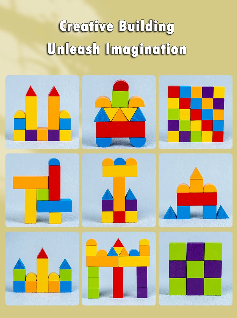 · Наблюдайте за строительными блоками в нескольких направлениях, чтобы осуществлять наблюдение за способностью вашего ребенка, распознавание цвета и распознавание геометрической формы.