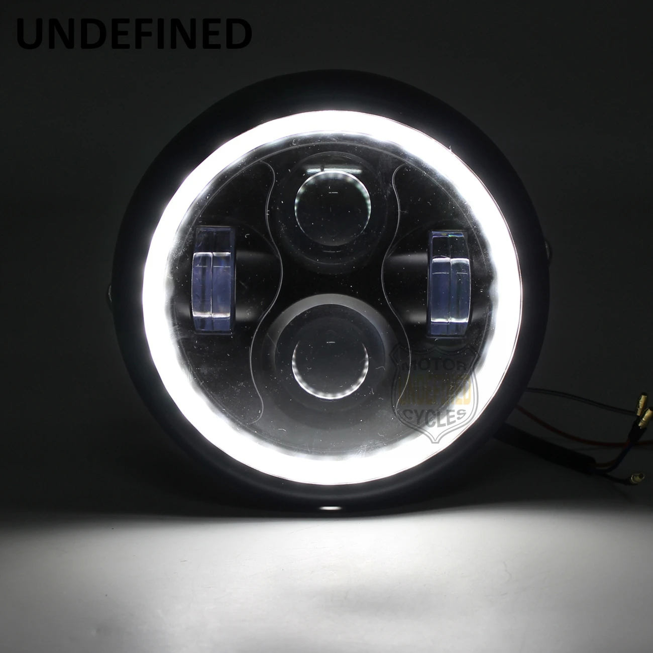 Отзывы о Мотоцикл Cafe Racer Bobber 6 5 дюйма светодиодная фара Спираль белый боковой кронштейн