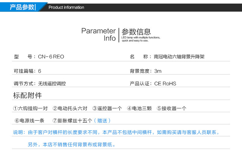 Шестиосевой Радиоуправляемый Электрический фон с поддержкой лифта ng-6r рамка для фона беспроводной пульт дистанционного управления громкостью, за исключением алюминиевых баров (труб)