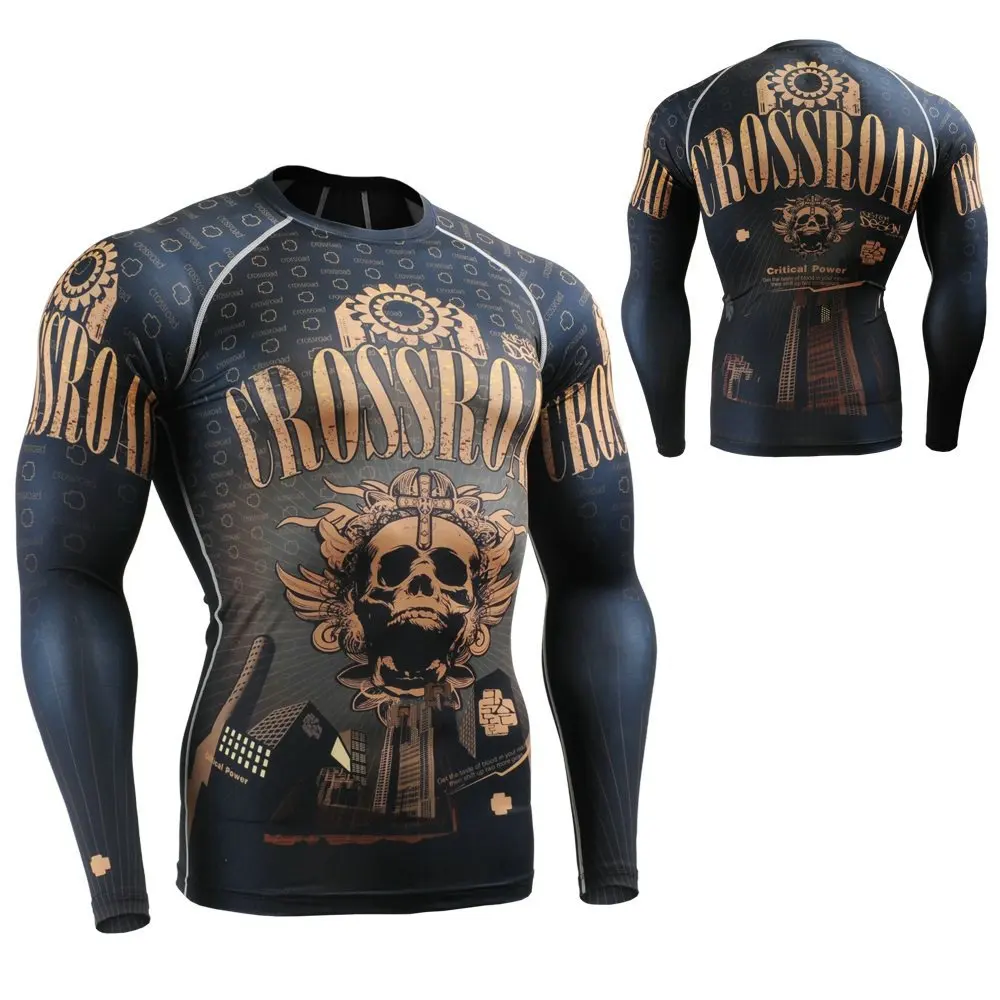 "TIME SKULL" полностью Графический-второй слой технической компрессии кожи-специальный дизайн ММА.