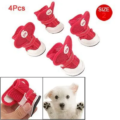 Отзывы о 2 Pairs Pet dog shoes Adjustable Fastener Nonslip Rubber Sole Red Air Mesh Shoes for Dog Size | Дом и сад