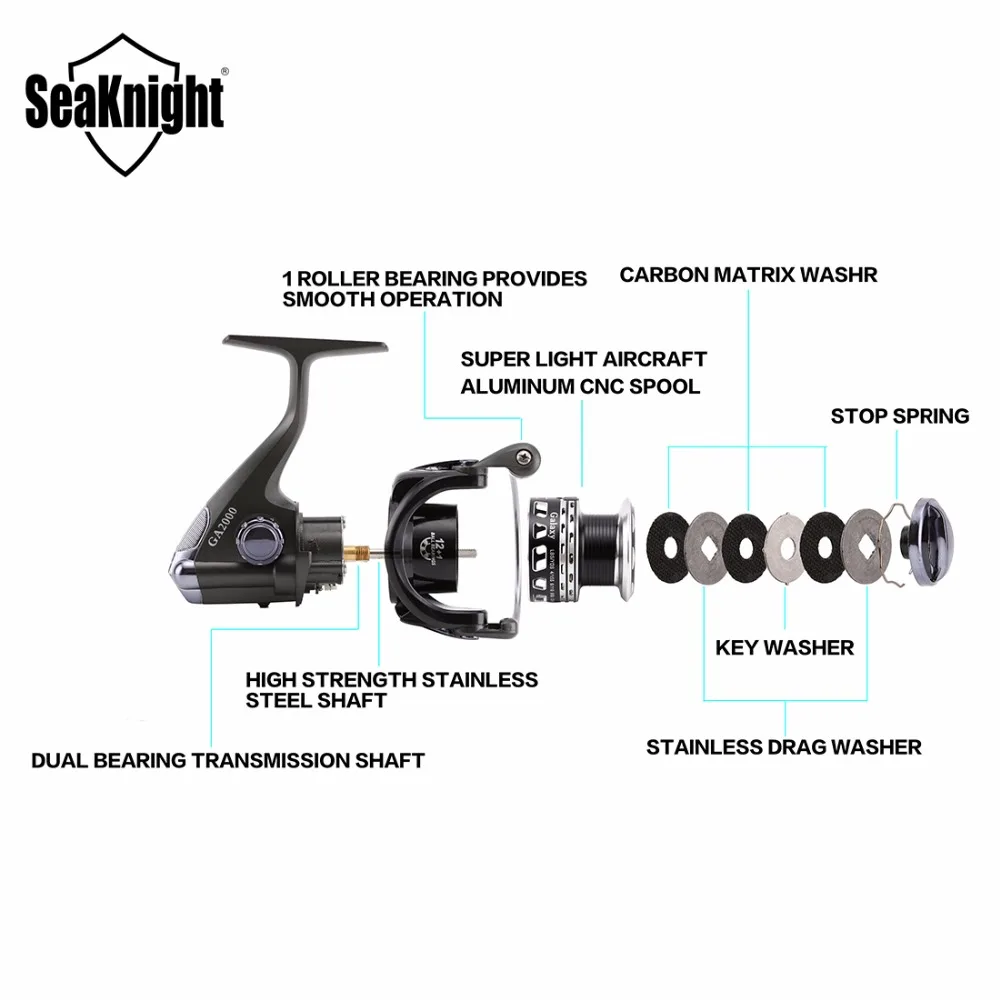 SeaKnight GA 2000/3000/4000 новый дизайн червячный вал 13bb качество приманка спиннинговая Рыболовная катушка с Карбон председателя