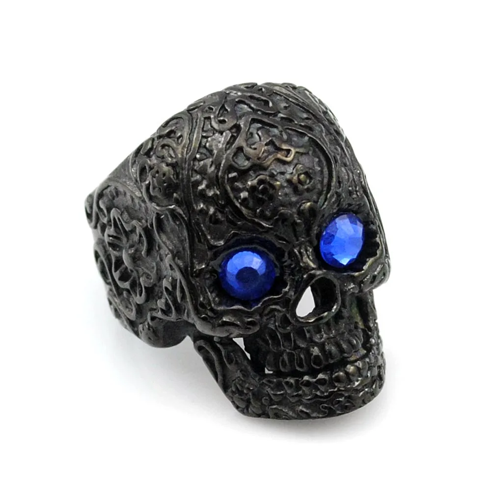 Отзывы о Кольцо мужское татуированное с голубыми глазами черепом и цветами из