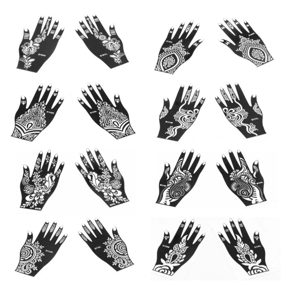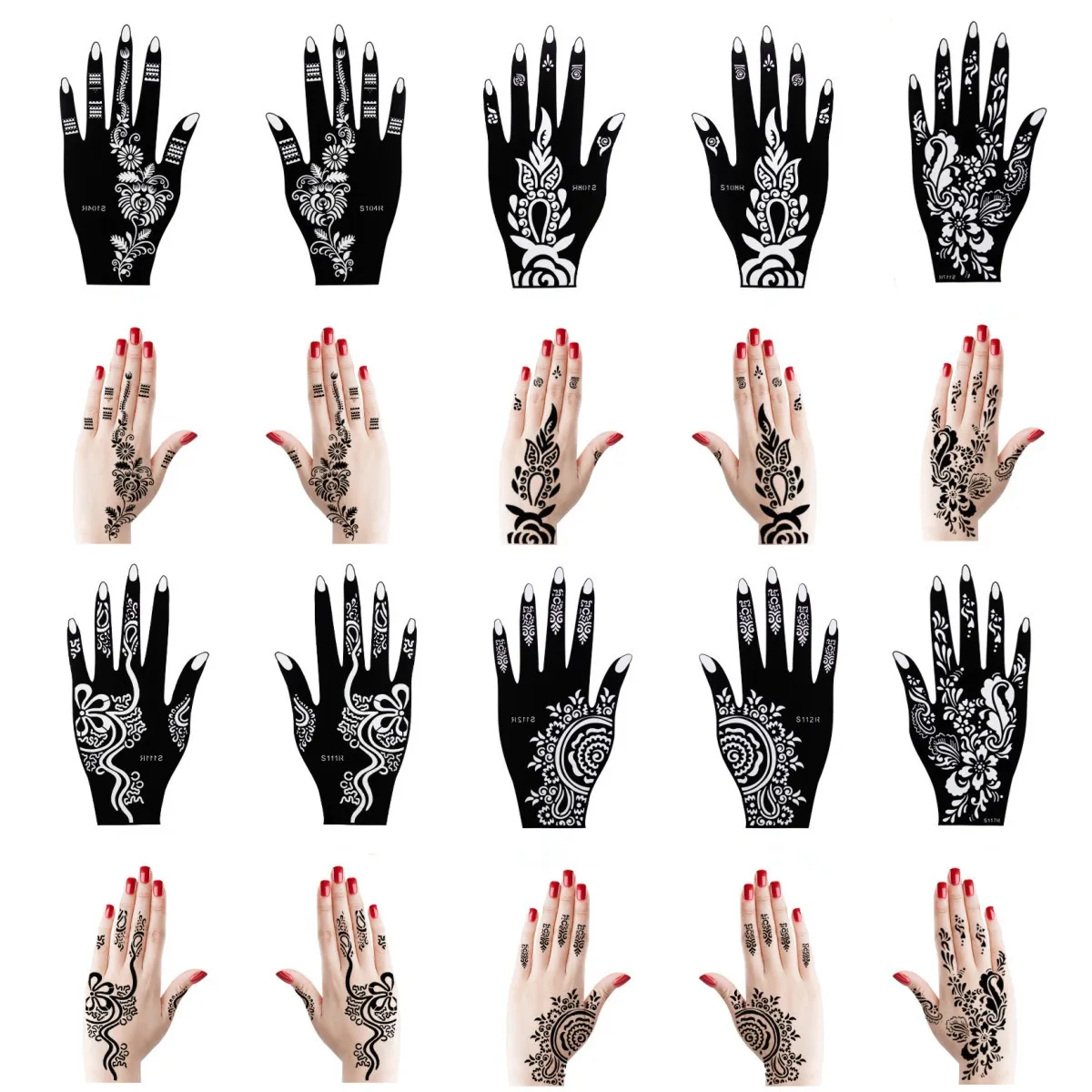 Индийская хна трафареты для татуировки рук ног боди-арт наклейки трафареты татуировки ПВХ наклеенные наклейки пара
