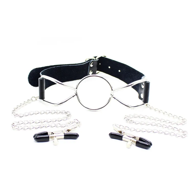 Отзывы о 1 шт. бондаж из натуральной кожи Открытое кольцо для рта кляп с зажимом сосков