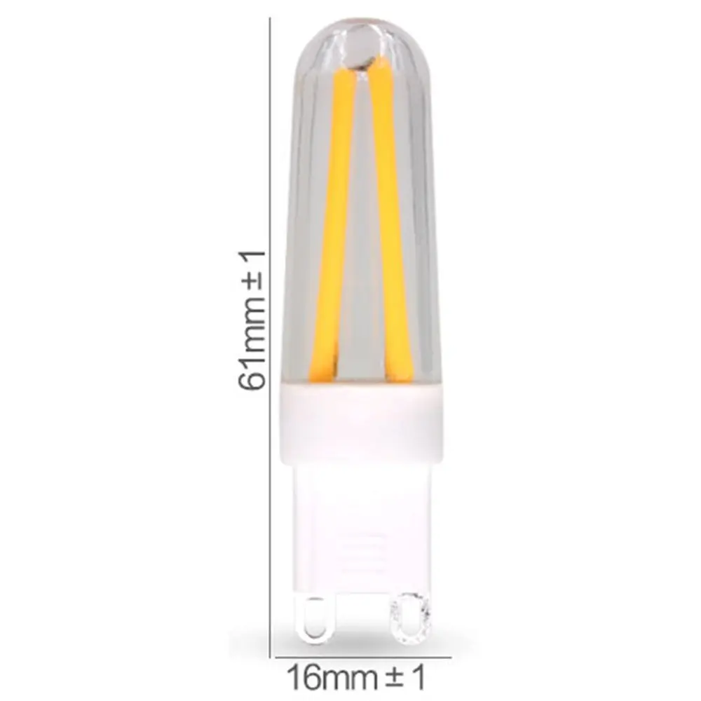 Спецификация:Название продукта: светодиодный светильникМощность: 2 Вт 4 ВтТип основания: G9Светодиодный чип: 4 шт. чип EpistarНапряжение: 220 В переменного токаРегулировка яркости: ДаМатериал: Поликарбонат + керамикаУгол луча: 360 °Цветовая температура:Теплый белый 2800-3200KХолодный белый 6000-6500KДлительный срок службы: более 50000 часов