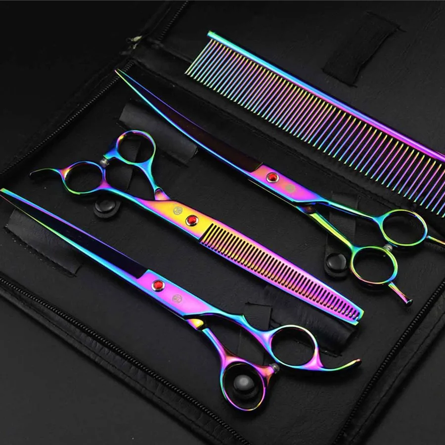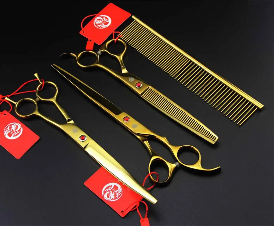 7 дюймов 8 дюймов Профессиональный набор ножниц для груминга домашних животных прямые и тонкие и изогнутые ножницы для ухода за собакой набор из 3 предметов