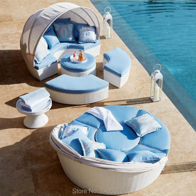 Отзывы о Уличная ротанговая кушетка с навесом уличная мебель Солнцезащитный шезлонг для