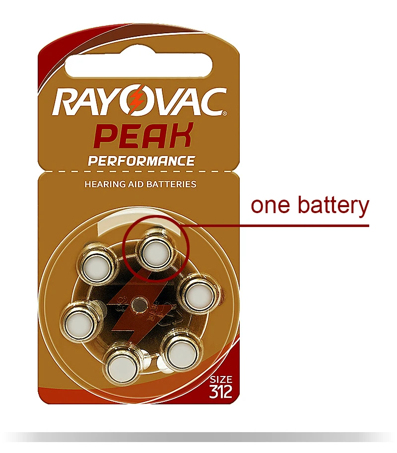 Rayovac пиковый слуховой аппарат батареи 312 a312 312a P312 PR41 Германия цинковый воздушный Аккумулятор для ITC / HSE слуховые аппараты