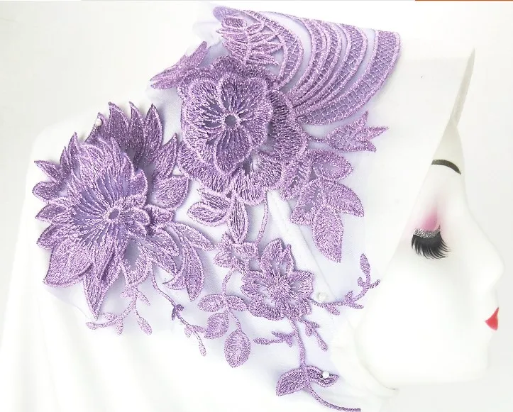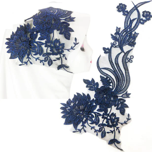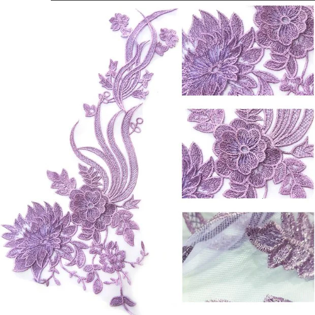 Отзывы о 4 шт. ширина 50x23 см фиолетовые/синие патчи из блестящей ткани с кружевной