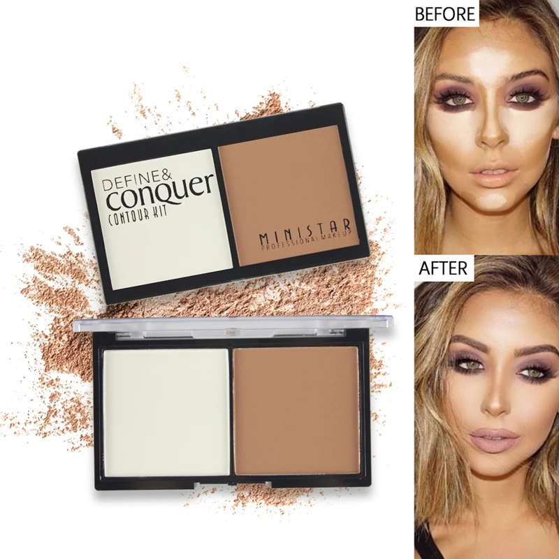 2 цвета для лица матовая пудра Контур бронзатор хайлайтер палитра Набор Отделка пудра Brozer контур лица прессованная пудра