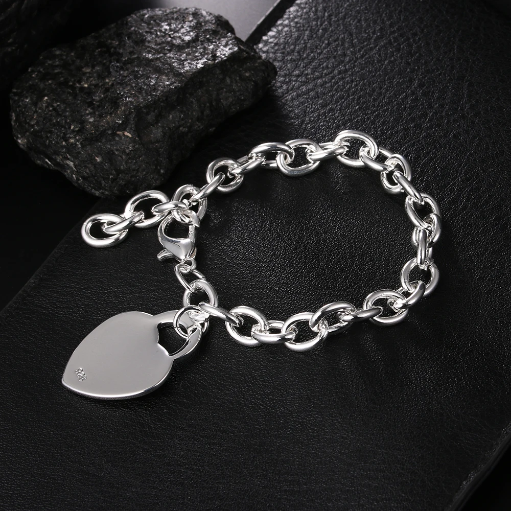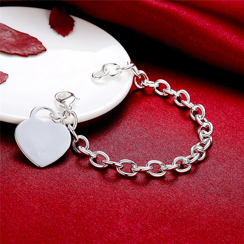 Женский и мужской браслет DOTEFFIL из стерлингового серебра 925 пробы с сердцем, свадебные вечерние ювелирные изделия, рождественские подарки