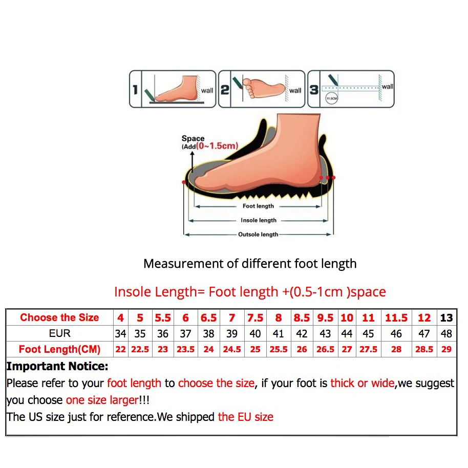 | Важное примечание:Пожалуйста, обратитесь к вашемуДлина стопыДляВыберите размер, Если ваша стопаТолстый или широкий, Мы предлагаем вам выбратьНа один размер больше!Размер США только для справки. Мы отправляемЕвропейский размер | |||||||||||||||