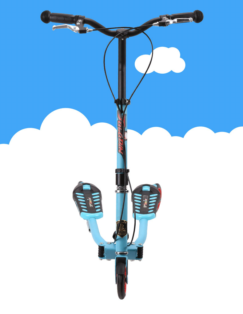 В легко сочетаемые рубашки для верховой езды, двумя педалями является последних инноваций в детские самокаты! Нет необходимости kick off. Уникальная запатентованная система педалей с трещоткой, просто педаль и ходите! Скутер также складывается в компактный размер и поставляется в комплекте с тормозом и регулируемыми по высоте ручками.