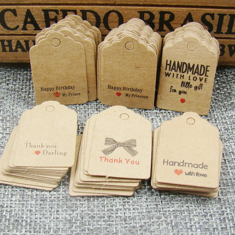 Бумажная бирка имя | Различные бумажные подарочные бирки 100 шт в партии спасибо крафт подарочные упаковочные бирки ручной работы с любовной продукцией ценник |