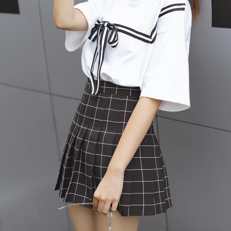 Отзывы о 2018 для женщин Kawaii AA Высокая талия плед плиссированная юбка женский Британский