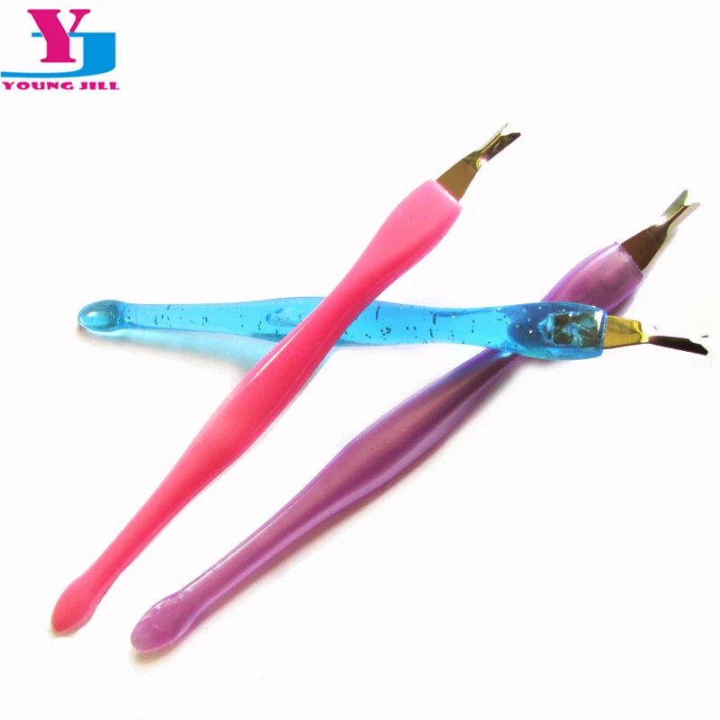 высококачественная нержавеющая сталь кутикулы ногтей pusher head ногтей кутикулы pusher ногтей средство для удаления кутикулы из пластика