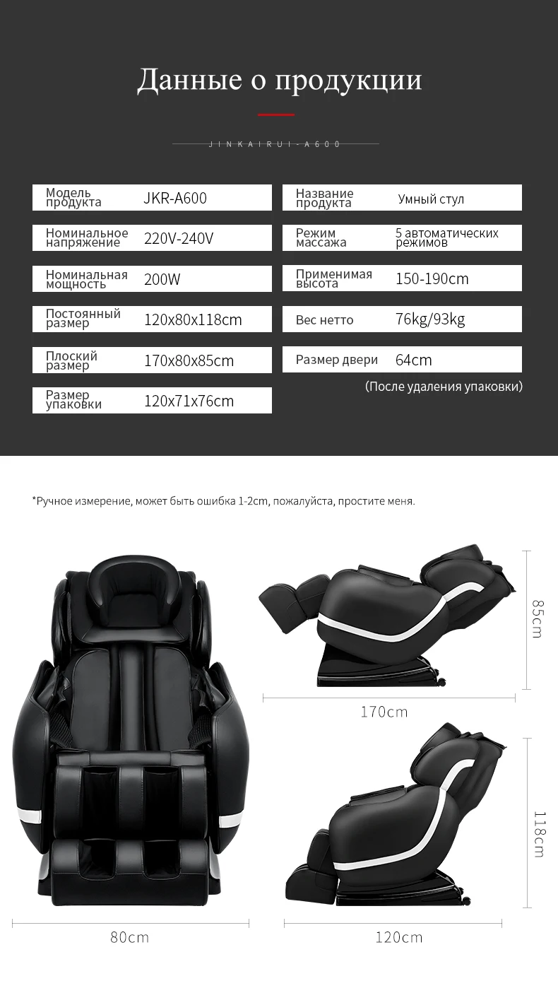 Отзывы о JinKaiRui Электрический массажный стул для здоровья с нулевой гравитацией