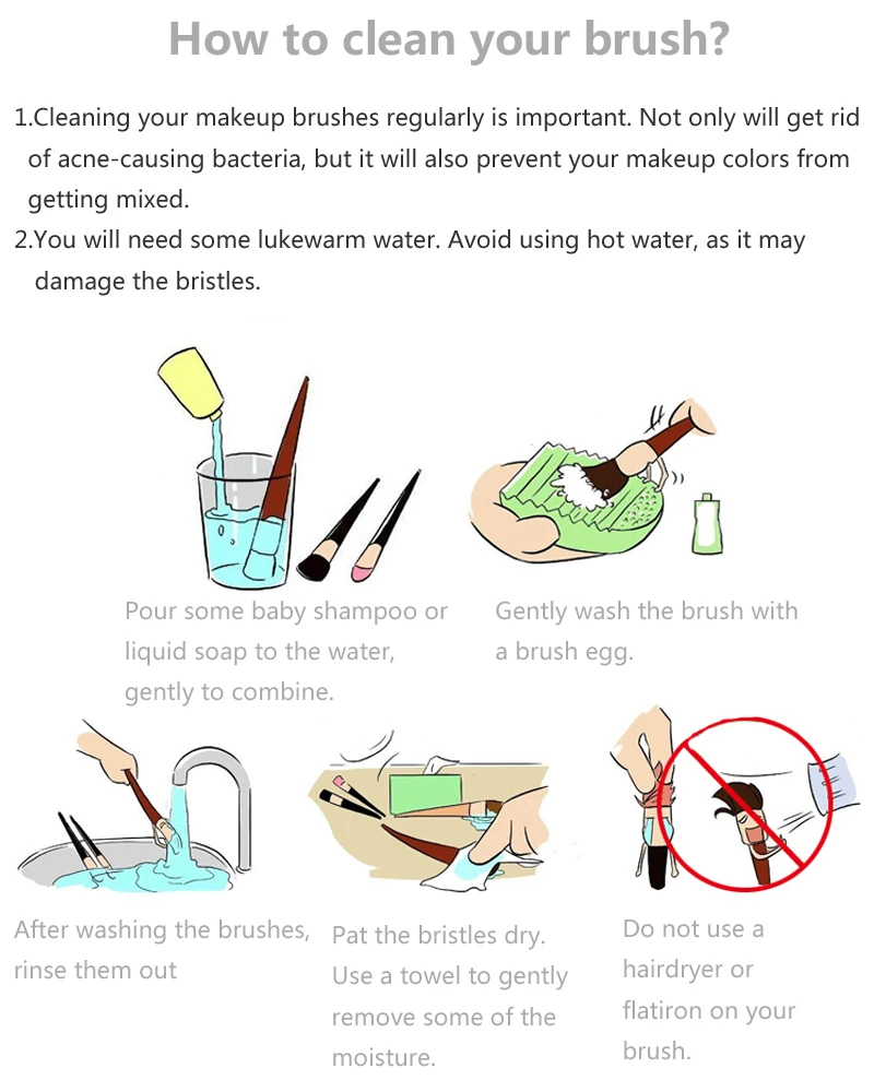 2.) Кисть для макияжа должна быть очищена каждые 1-2 недели после использования.