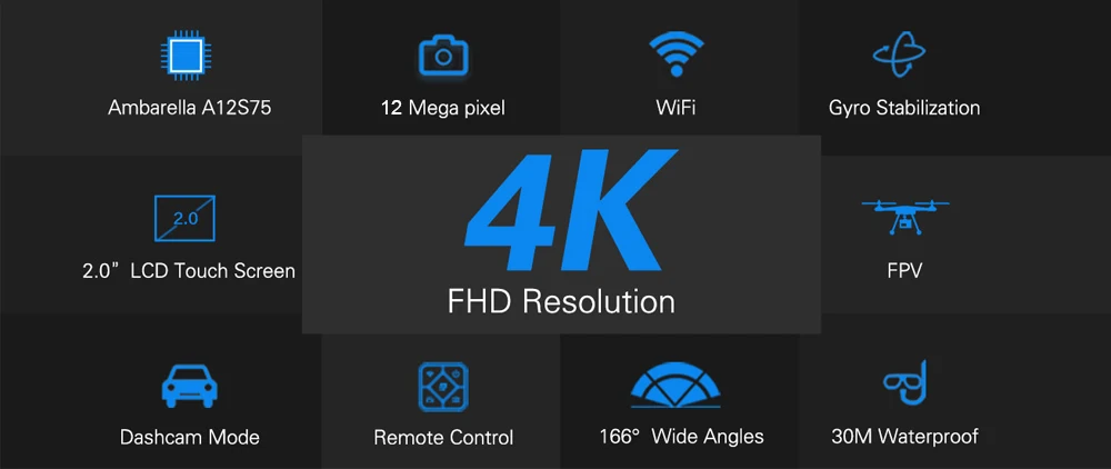 Wi-Fi Ambarella A12S75 30 м Водонепроницаемый удаленного 4 К Спорт экшин Камера автомобиль Mini DVR