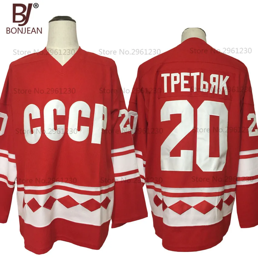 Бонжан новые дешевые хоккейные Джерси Владислава tretiak #20 СССР CCCP русский хоккейный трикотаж Красный прошитый мужской зимний спортивный костюмНам $45.54/Шт