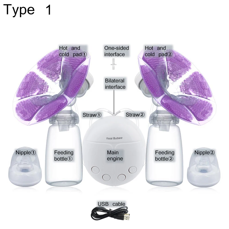 1. Наименование: Электрический молокоотсос 2. Материал: пищевой PP \ пищевой силикон 3. Емкость бутылки: 150 мл/pice 4. Рабочий Тип: электрический 5. Интерфейс питания: интерфейс USB 6. Выходная мощность: 5,0 V 1A 7. Рабочий децибел: 40-50 дБ 8. Диапазон температур:-20 ℃-100 ℃ 9. Способ использования: односторонняя откачка груди/Двусторонняя откачка