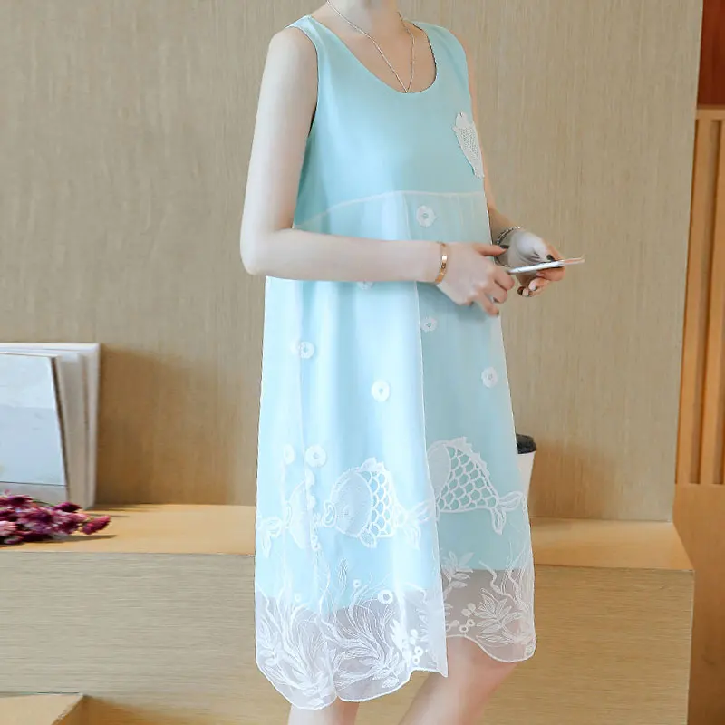 вышитые Кружево Материнство Платья для женщин Костюмы милые рыбы Для женщин Летнее праздничное платье без рукавов для беременных Одежда S-2XL лактации