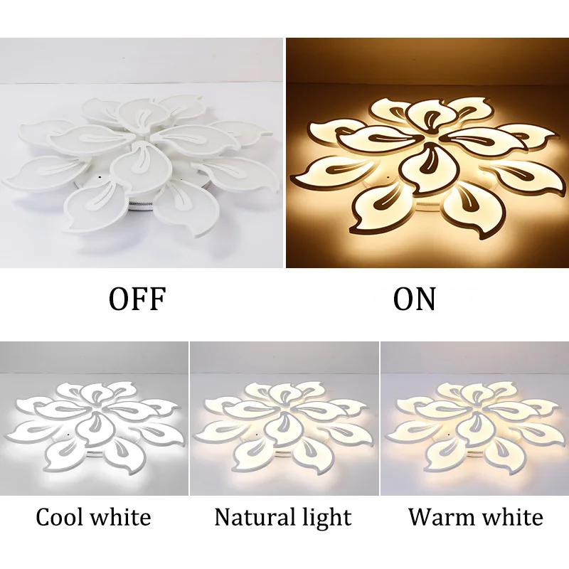 100% Фирменная новинка. Размеры: 3 головки Dia55 * H8cm 30 Вт 5 головок Dia65 * H8cm 42 w 9 глав Dia85 * H12cm 72 w 12 глав Dia95 * H10cm 96 w 15 головок Dia115 * H10cm 120 w Основные материалы: фурнитура + акрил Напряжение: 85-265 в Тип источника света светодиодный Отделка: окрашенные Источник света включен или нет: Да RC с регулируемой яркостью: Содержит холодный белый, теплый белый, естественный свет, вы можете регулировать яркость и цвет света. Упаковка: RC с регулируемой яркостью: 1 Лампа + 1 пульт дистанционного управления Теплый/Холодный белый: только 1 лампа (без пульта дистанционного управления)