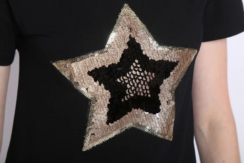 2017 Летний Новый Стиль, женские белые или черные Лоскутные Топы с блестками, Повседневная футболка с короткими рукавами