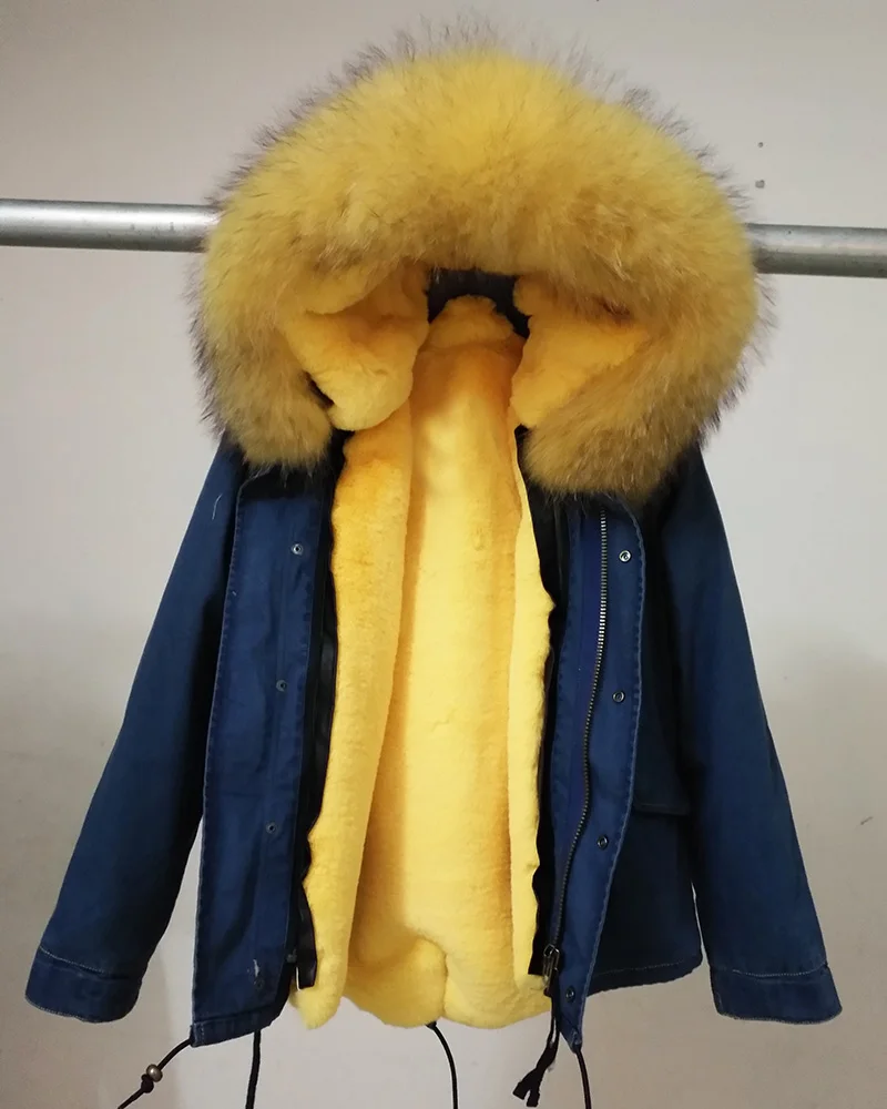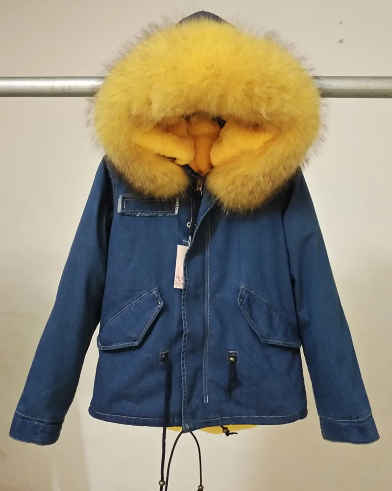 Отзывы о Женское джинсовое пальто с большим воротником из меха енота зимняя куртка
