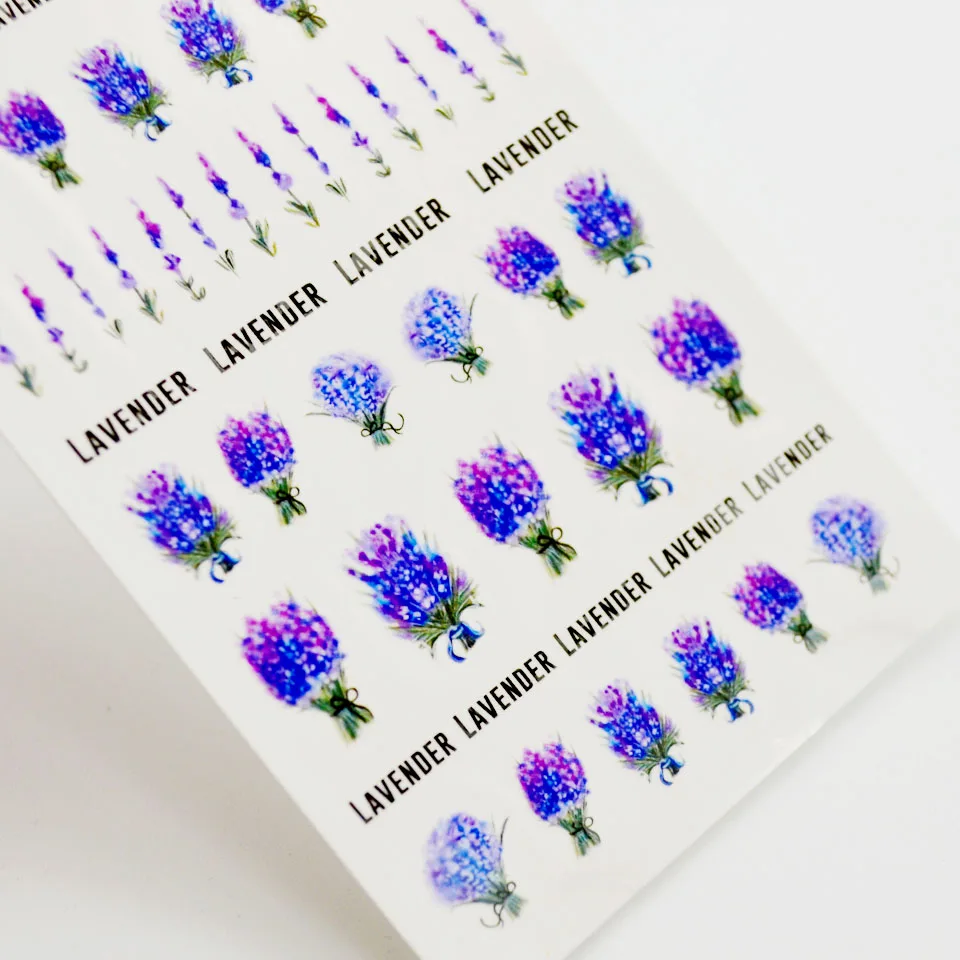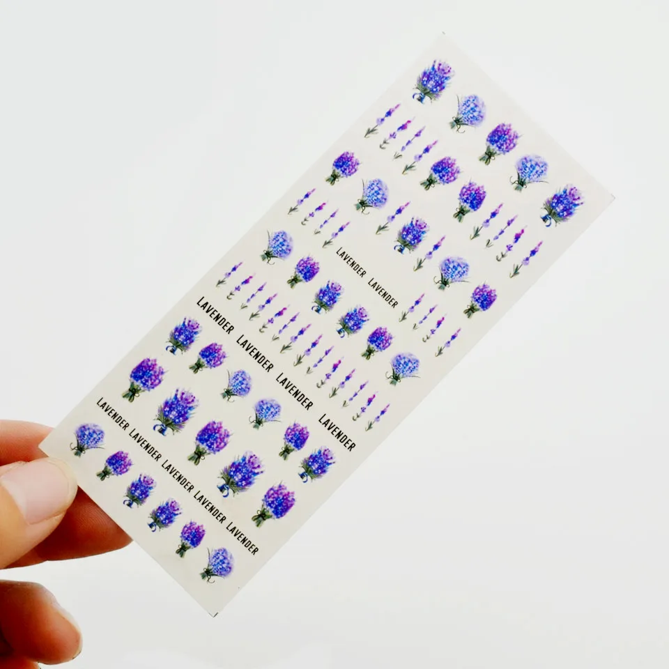 Лавандовые наклейки для ногтей, наклейки для ногтей с цветущими цветами, лавандовые наклейки для дизайна ногтей, переводные наклейки для воды ZJT097