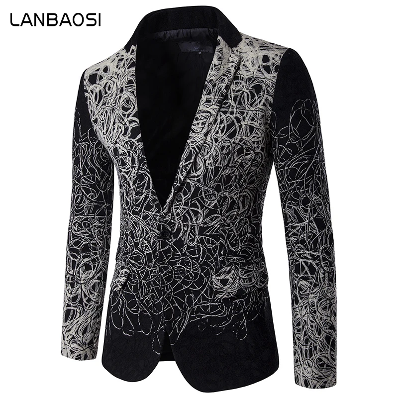 LANBAOSI брендовая одежда Блейзер Для мужчин диска цветы Повседневное однобортный костюм Мода 2017 г. комфорт Slim Fit Свадебный костюм куртка