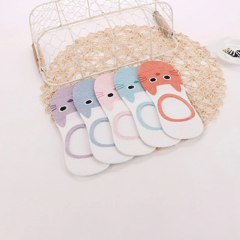 5 пар, женские невидимые носки-башмачки, креативные полосатые носки с милым мультяшным котом, Веселые носки, Летние низкие женские носки для девочек