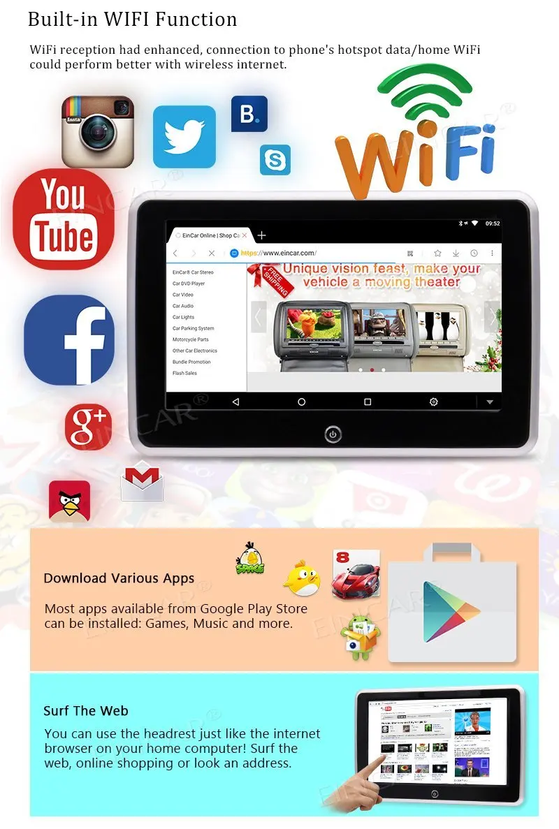 Отзывы о Android 6 0 Автомобильный подголовник заднего сиденья монитор 10 1 дюймов Мульти