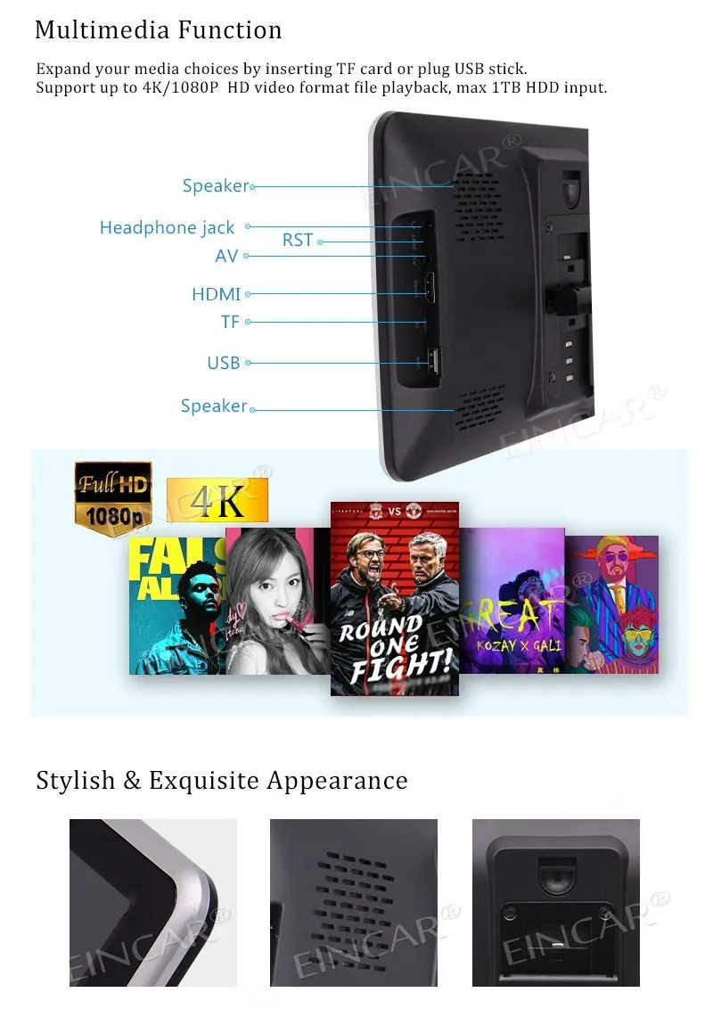 * 10,1 дюймовый дисплей, разрешение HD 1366*768 с емкостным сенсорным экраном для лучшего просмотра; чувствительный, прочный и простой установки!