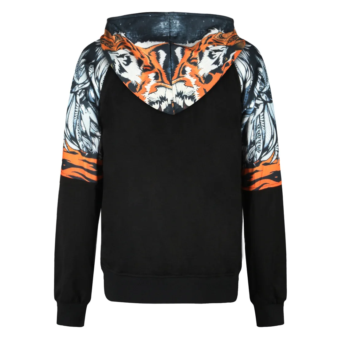 Осень/зима мода тигровый узор цифровая печать с капюшоном Черный Флис Мужчины/Женщины с капюшоном толстовки с крышкой S-3XL