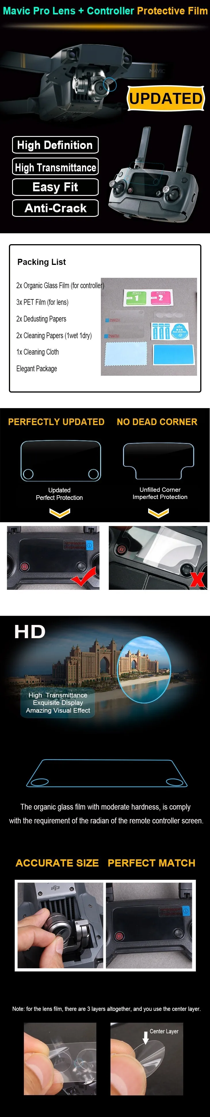 Отзывы о 9H жесткий пульт дистанционного управления защита экрана/пленка для DJI Mavic Pro +
