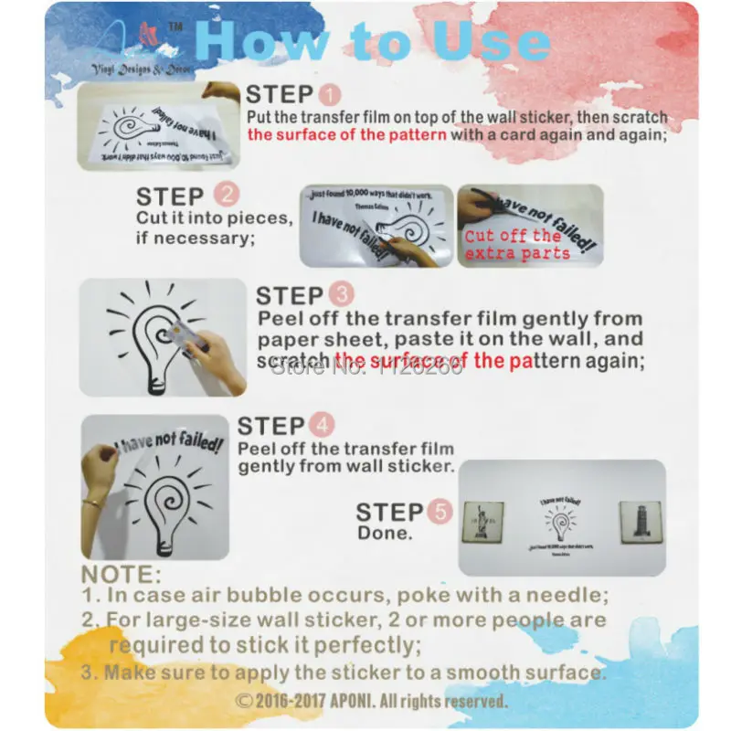 Шаг первый: Поместите пленку для переноса поверх наклейки на стену, затем поцарапайте поверхность рисунка с помощью карты снова и снова;