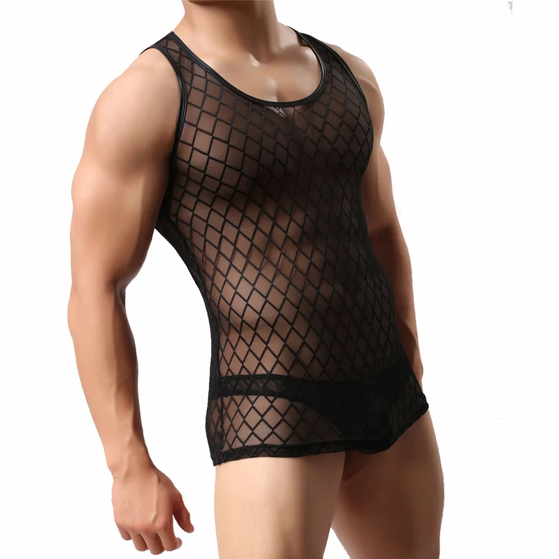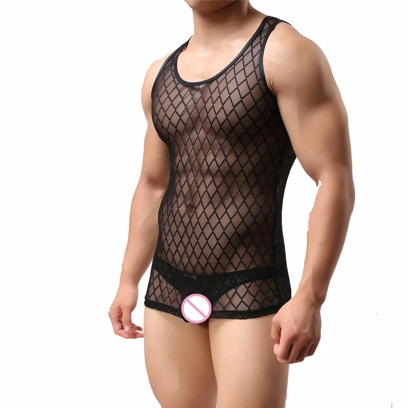 Отзывы о Сексуальное мужское нижнее белье прозрачный сетчатый жилет комплект мужского