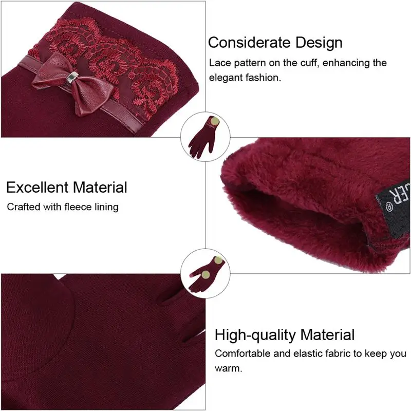 Эта пара перчаток очень универсальна и удобна в носке. Совет сенсорного экрана позволяет вам получить доступ к смартфону и продолжать свой напряженный день без труда независимо от того, что погода кидает на вас! Стильно оформленные с кружевом и изящно украшенные бантом на манжете, перчатки могут быть элегантной модой на вас. Больше цветов на ваш выбор.
