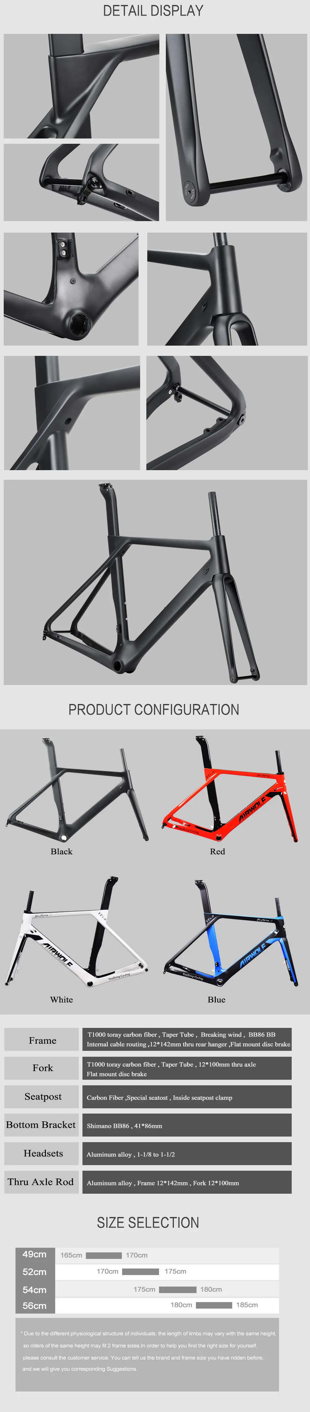 2. Тип рамы: R001 углеродистая дорожная рама 700C