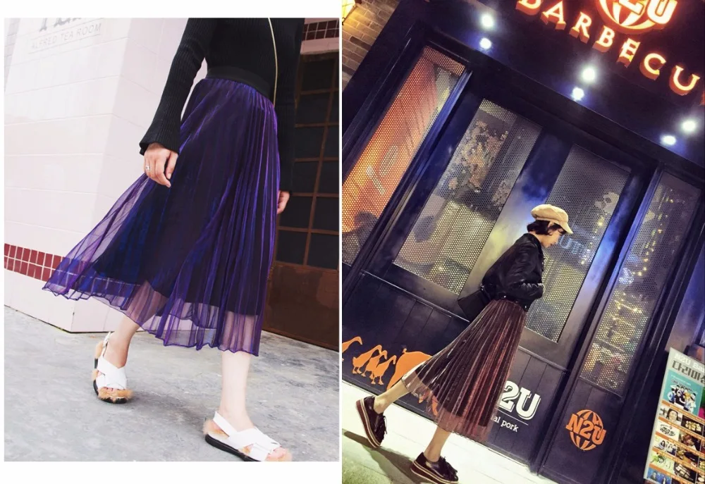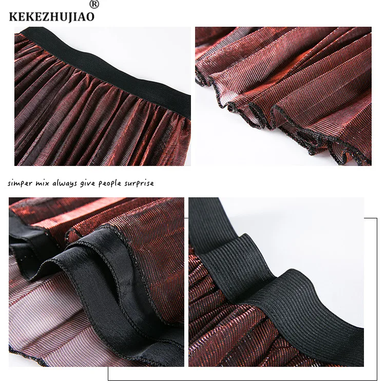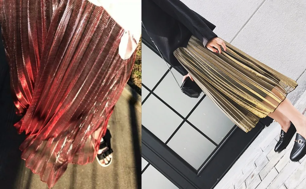 Отзывы о Женская плиссированная юбка с металлическим градиентом вечерние юбки до