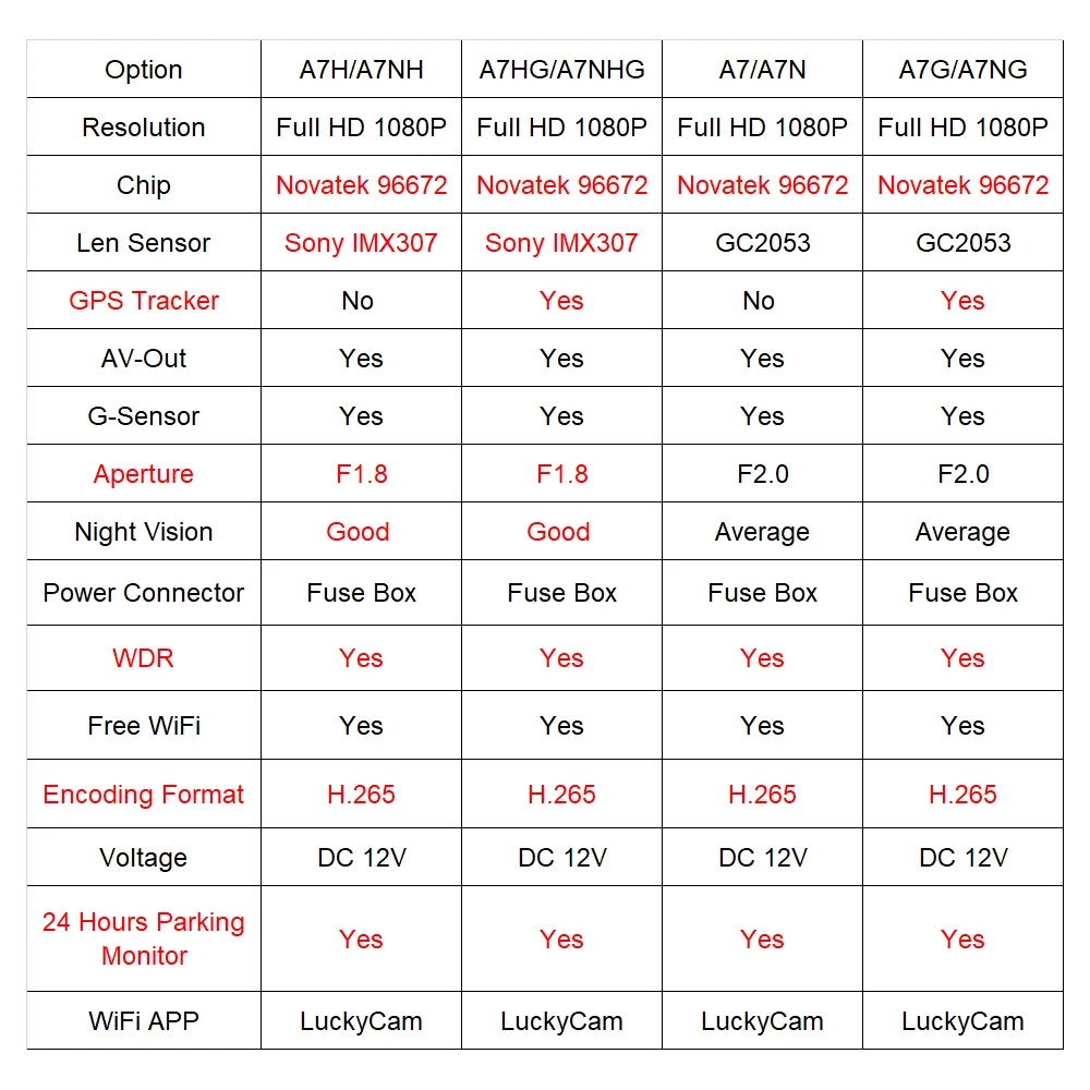 Теперь он может поддерживать карты 64G и 128G TF. Серия A7-это большое обновление в 2019 году. A7H, процессор Novatek 96672, сенсор Sony IMX307, он может записывать Трансформирование видео ближнего и дальсветильник высокого качества. Он может записывать Видео высокого качества на входе и выходе из туннеля тоже. Как мы протестировали, мы считаем Novatek 96672 лучше, чем 96658, Sony IMX307 лучше IMX323.