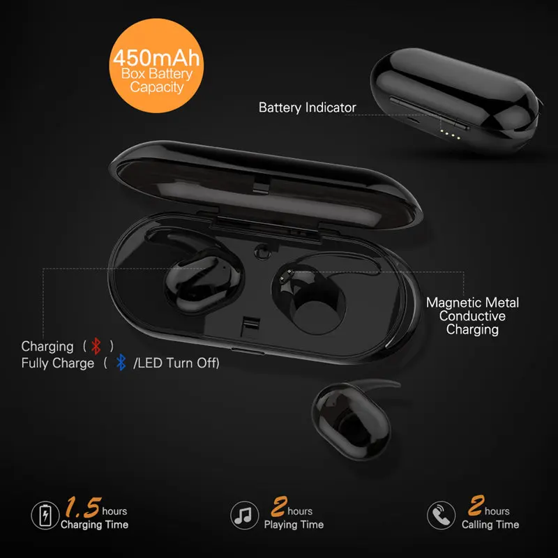 Почему вы выбираете нас: Smart touch control:Коснитесь как l, так и R для 3 S для питания. Музыка играть/остановить или ответить вызов/повесить на один слегка сенсорный, двойное прикосновение к следующей песне и долгое прикосновение, чтобы отклонить вызов. Истинные беспроводные вкладыши:Кабель бесплатно позволяет обмениваться музыкой или видео-звуком кому-то. Больше никто не беспокоится о прыжке, потирая или потирая что-то. Что самое главное, это обеспечивает вашу безопасность, когда вы движете своим автомобилем. Удобные и устойчивые & #65306;Форма наушников и 3 разных размера ушных наконечников подходят к вашим ушам комфортно. С силиконовыми ушными наконечниками, вкладыши остаются прочно в ваших ушах и не упадут легко, когда вы работаете или убегаете. Стерео и моно режим:Гарнитура содержит две части, и каждый элемент может использоваться отдельно от вас и другого, чтобы вы могли поделиться музыкой с кем-то в пределах 10 м (33ft). Или вы можете использовать стереозвук, чтобы насладиться собственным музыкальным миром. Переносная зарядка и Мощная батарея:Зарядите Микронаушники в течение 1 часа в коробке. Обеспечивают до 2 часов работы от музыки. Зарядный чехол может заряжать 5 раз для наушников. Также можно использовать для зарядки телефона. Что вы получите: 1 х 9100 гарнитура 1 х коробка для зарядки 1 х зарядный кабель 4 х ушных наконечников Спецификация: Режим товара: 9100 Вес наушников: 5.4 г Bluetooth версия: Bluetooth 4.1 Объем работы: 10 м (33фут) Время ожидания: 48 часов Музыка играть/Время разговора: около 2 часов Время зарядки: 1 час Любой вопрос, который вы хотите знать, пожалуйста, не стесняйтесь связаться с нами, мы с удовольствием поможем вам немедленно.