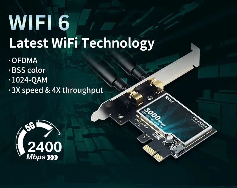 Отзывы о Wi-Fi 6 Intel AX200 3000Mbps беспроводной PCIe адаптер для рабочего стола двухдиапазонный 2 4G/5Ghz