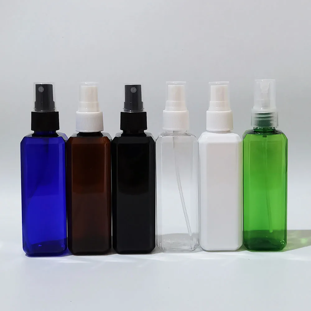 50 шт. 100 мл пустая черная квадратная тонкая бутылка для распылителя, дорожный пластиковый контейнер с распылителем для парфюмерии, косметические контейнеры
