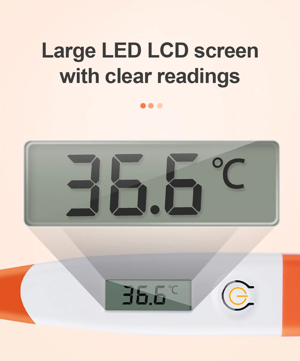 1. Быстро Измерьте температуру тела 2. Функция памяти 3. Подходит для различных случаев 4. Датчик температуры является водонепроницаемым 5. Без ртути и удобно читать