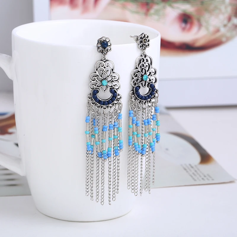 Отзывы о 1 пара женские этнические длинные полые висячие серьги богемные с кисточками
